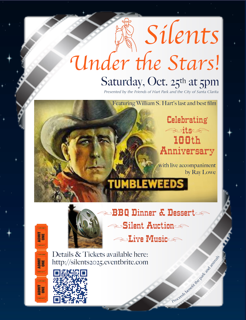 The Friends Of Hart Park and the William S. Hart Park & Museum Get your Silents Under the Stars tickets HERE!